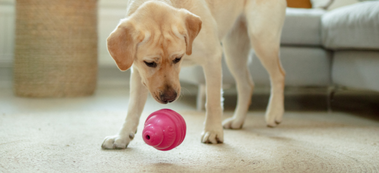 En aktiveringsleke eller et aktiveringsspill som man kan gjemme godbiter i. Viktig å utfordre din hund mentalt.